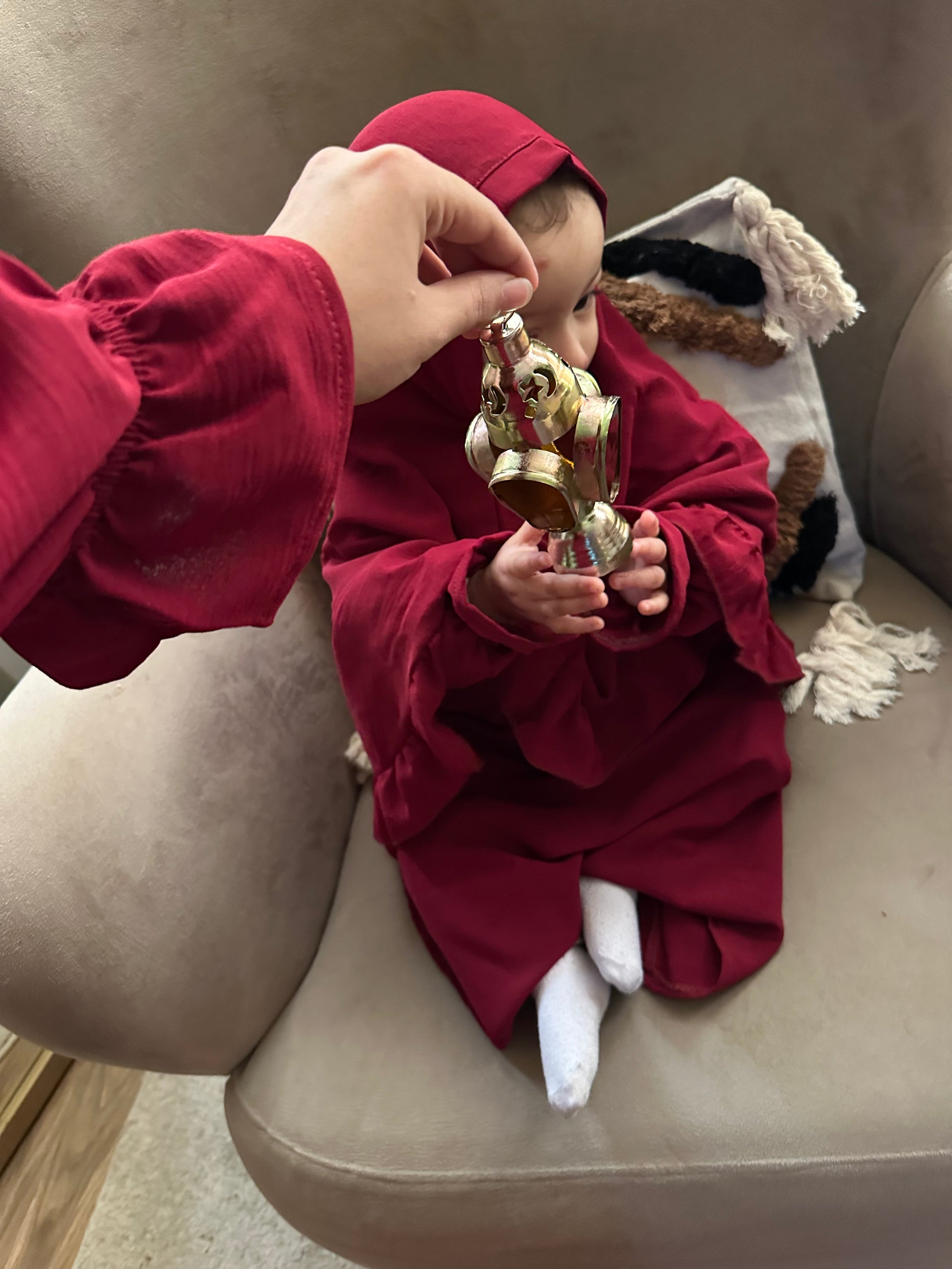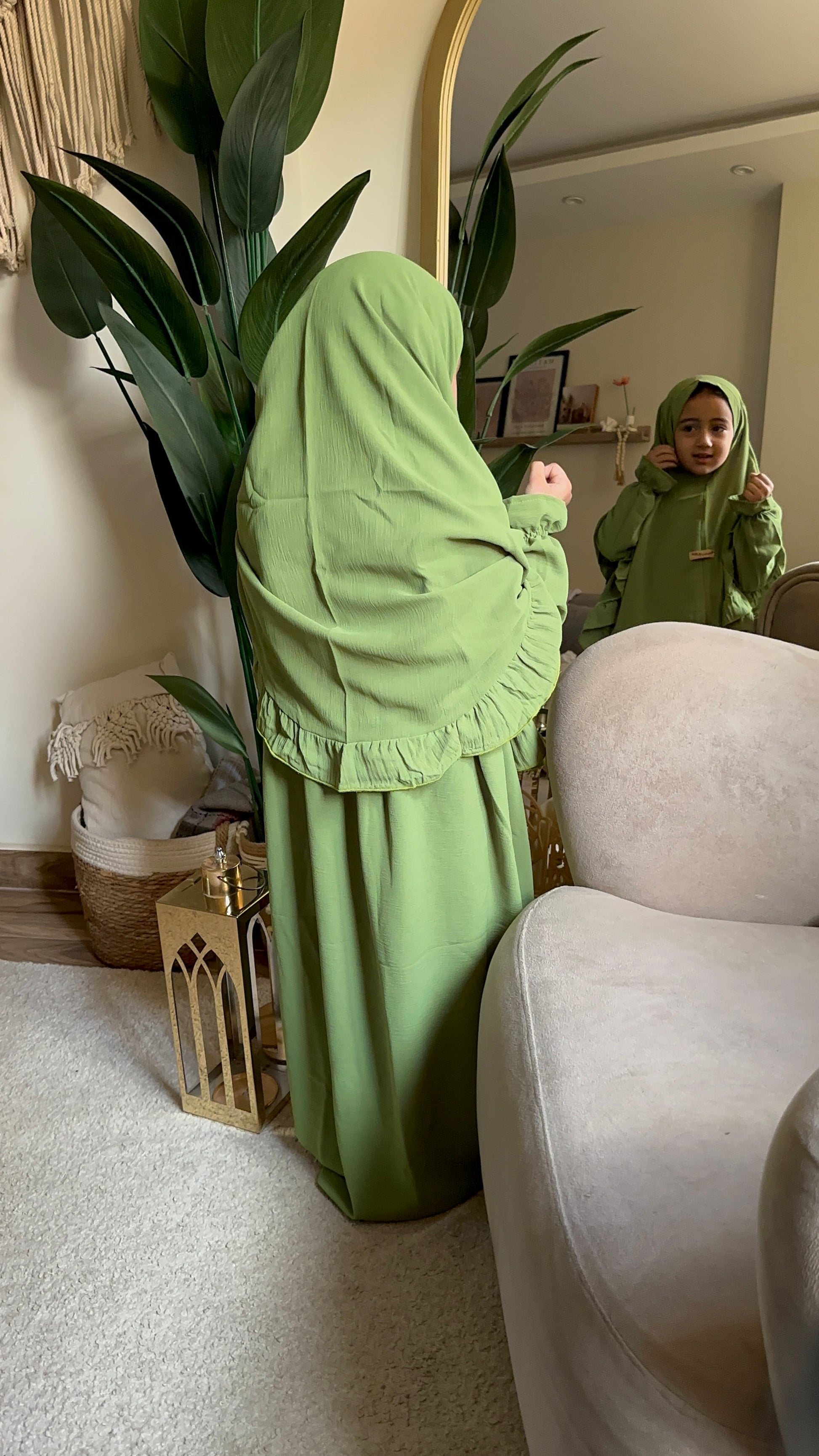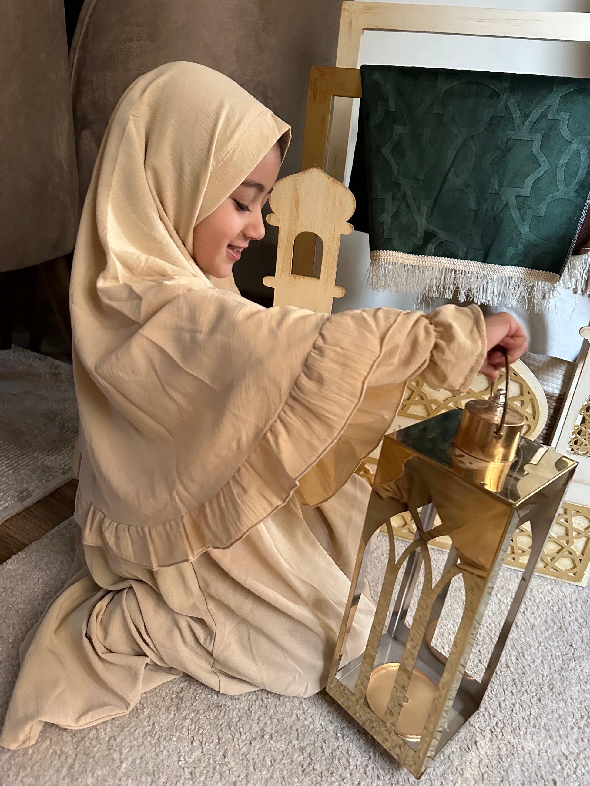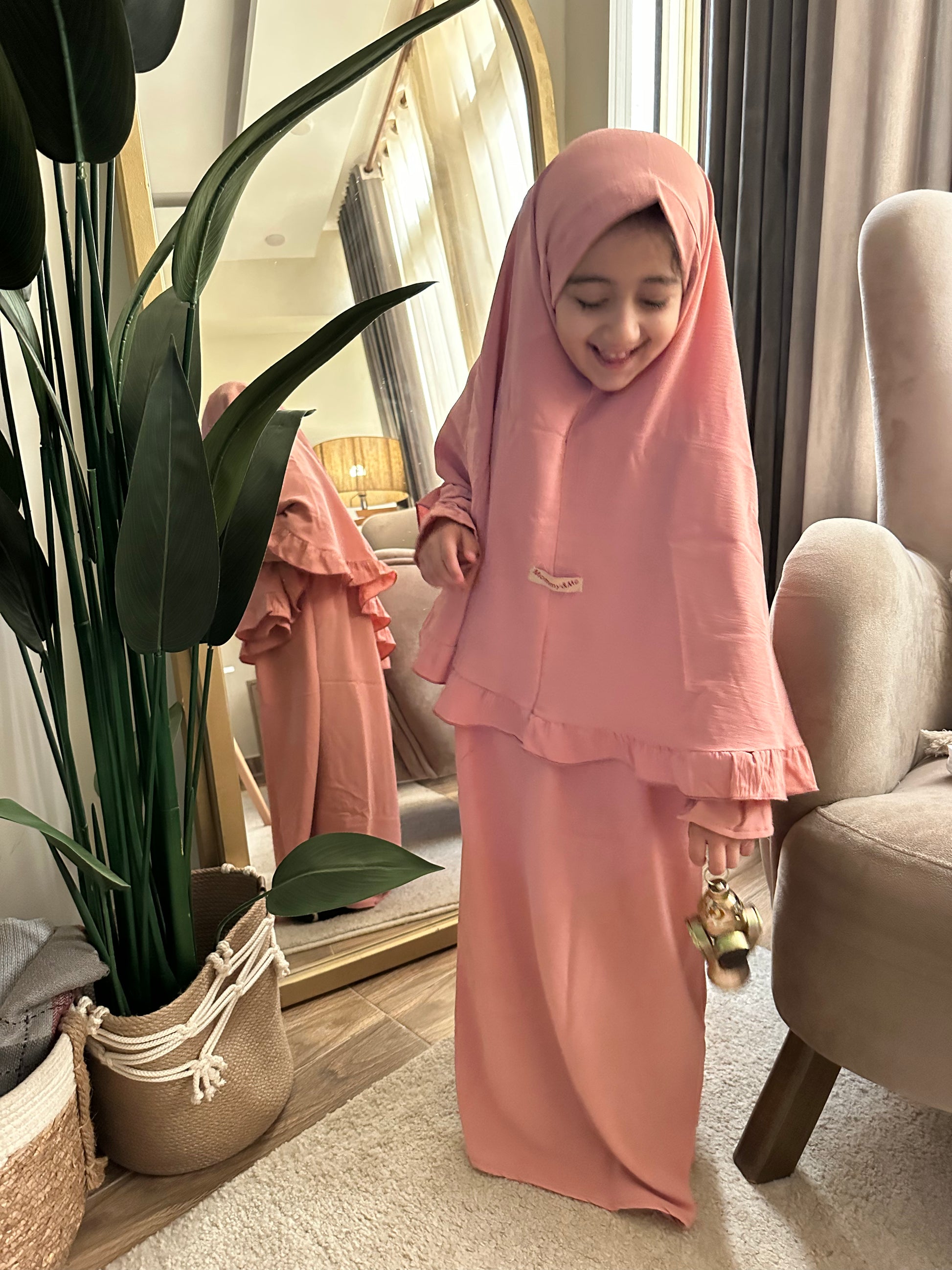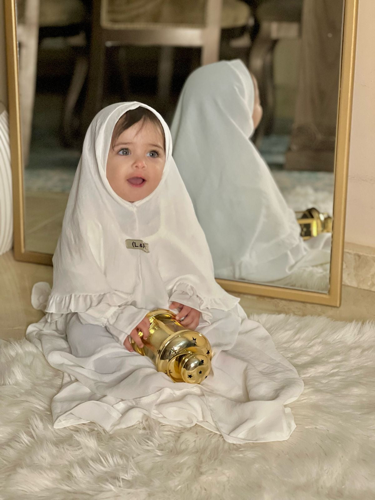 المميزات: خامة طرية جداً وباردة، ناعمة على بشرة الأطفال الحساسة، خفيفة ومش بتقيد حركتهم أثناء الصلاة أو اللعب.